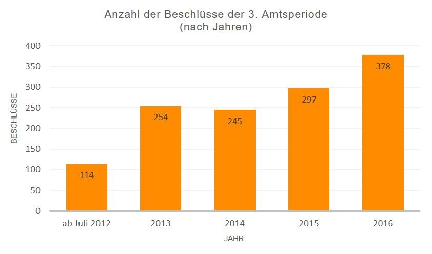 Diagramm der Anzahl der Beschlüsse der 3. Amtsperiode (nach Jahren)