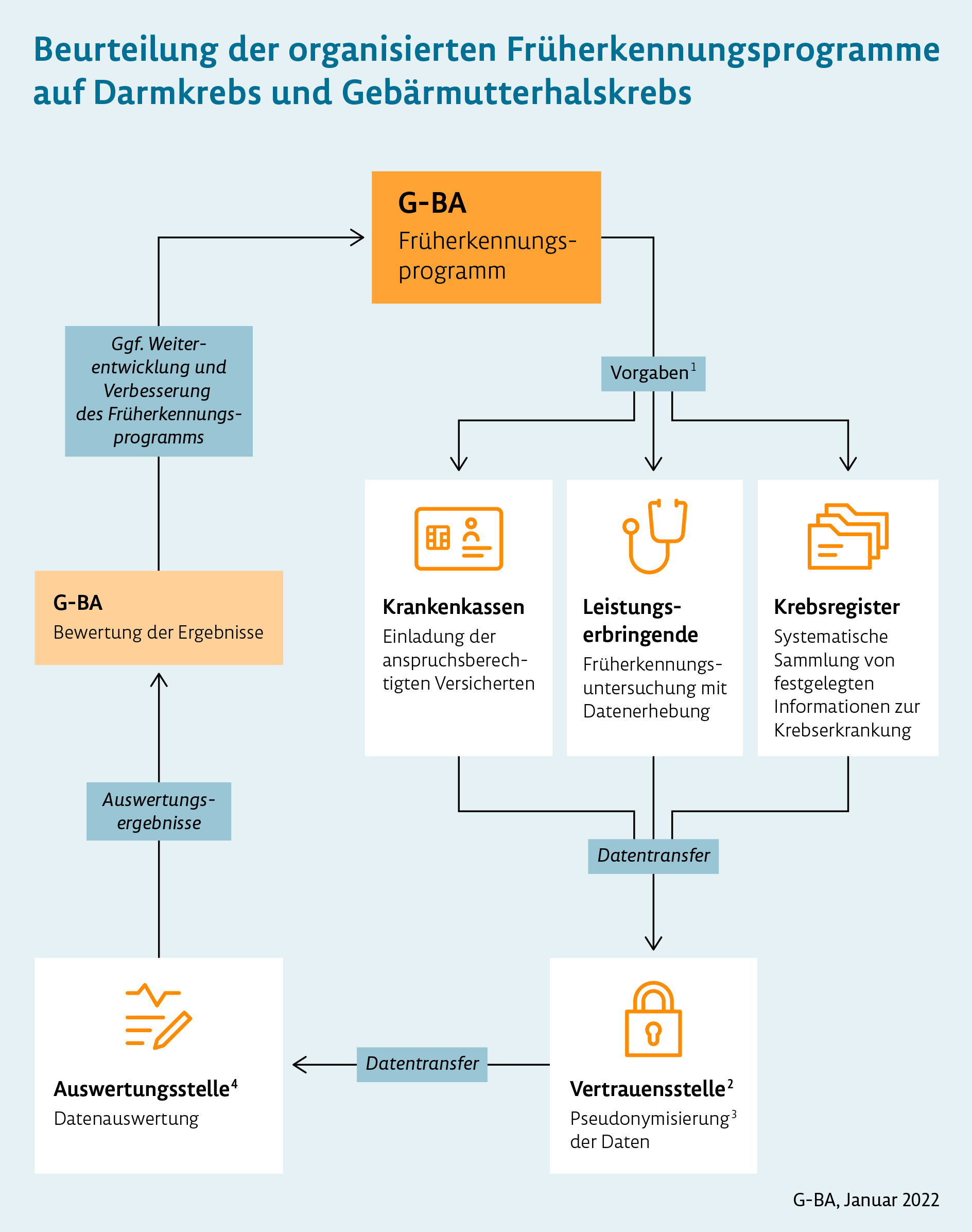 Organisierte Früherkennungsprogramme auf Darmkrebs und Gebärmutterhalskrebs: Datenfluss zur Programmbeurteilung
